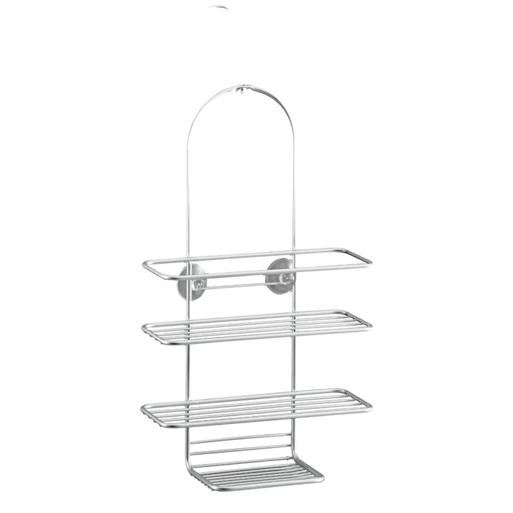 Metaltex Reflex doucherek met 3 etages. Draadstaal behandeld met Polytherm® beschermende dubbele coating; roest- en schokbestendig. Makkelijk te bevestigen met de haak en 2 zuignappen. Afmeting LxBxH ca. 25 x 11 x 43 cm. Kleur zilver. 5 jaar garantie.