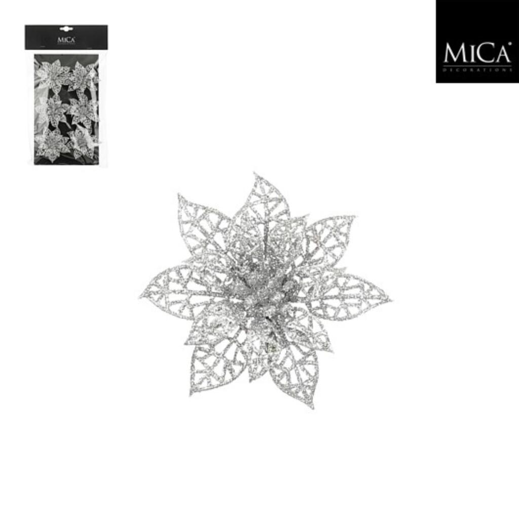 Mica Decorations Clip Poinsettia 1×8 cm 6 Stuks Zilver