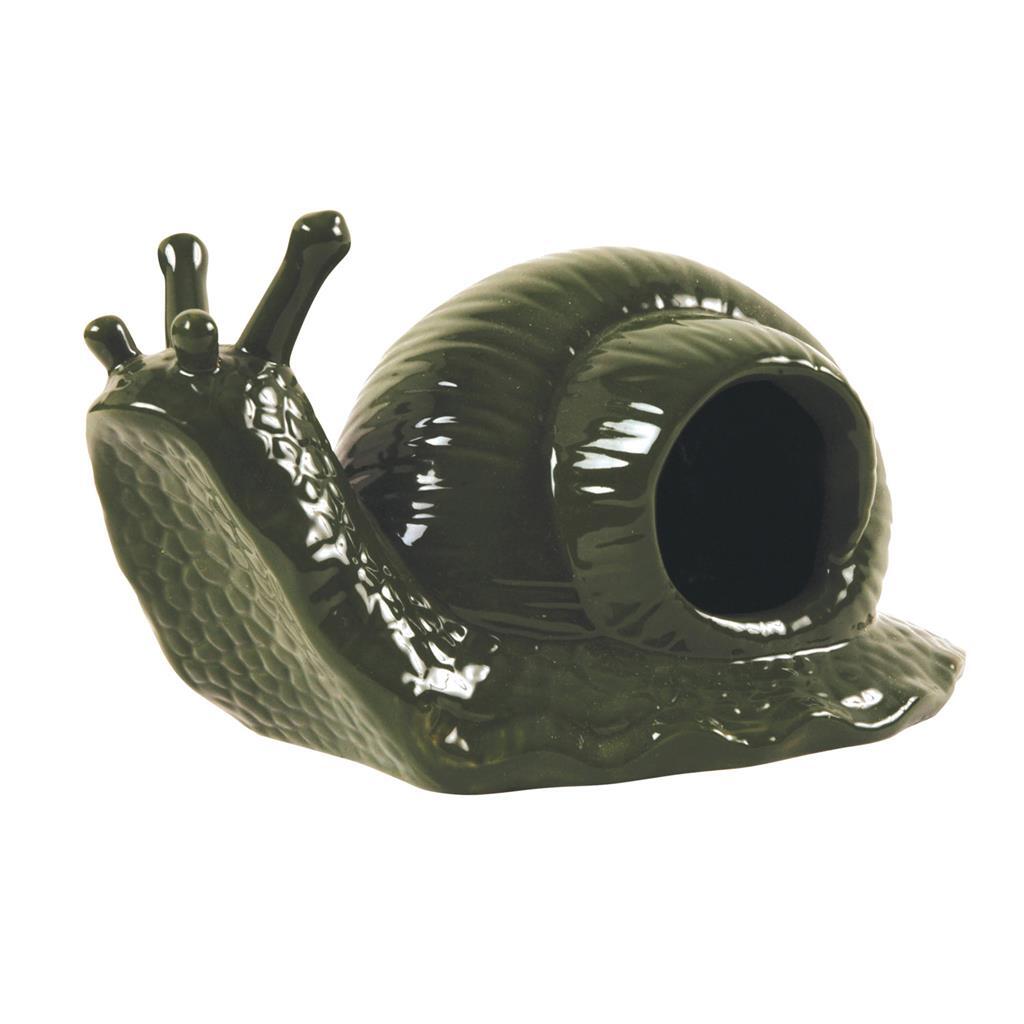 De meest vriendelijke manier om schade aan plannten door slakken te voorkomen. Giet via de opening een bodem vol met bier en de slakken zullen zich in het bier verdrinken en oplossen. Materiaal aardewerk. Kleur groen. Afmeting ca. 10,8 x 18 x 9 cm.