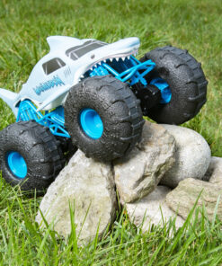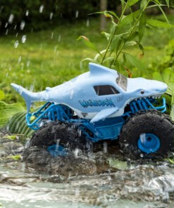 De officiële Monster Jam Megalodon STORM RC is geschikt voor elk terrein! Deze op afstand bestuurbare monstertruck van Monster Jam met een schaal van 1:15 rijdt op water en elk ander terrein met geweldige prestaties en snelheid! Met de Megalodon STORM heb jij de Monster Jam-actie in de hand en kun je sneeuw, modder, rotsen en gras trotseren! Met een waterbestendige behuizing en lichtgewicht op maat gemaakte banden kan de Megalodon STORM van water naar land racen, zonder te hoeven stoppen. Voer epische manoeuvres uit terwijl je alle kanten op racet, rij gemakkelijk voor- en achteruit met de eenvoudige controller en verander je wereld in een Monster Jam-arena! Met een frequentie van 2,4 Ghz kun je tot wel zes voertuigen tegelijk racen en de Megalodon STORM RC van een afstand van maximaal 30 meter besturen. De controller is uitgerust met een sensor die begint te piepen wanneer je buiten bereik bent. Met het authentieke ontwerp en officiële BKT-banden van de Megalodon STORM voelt het alsof je een echt voertuig bestuurt! De Megalodon STORM RC is oplaadbaar via USB, zodat je kunt opladen en de spannende Monster Jam-actie voor kunt zetten. Neem de controle over de angstaanjagende haai van Monster Jam met de Megalodon STORM RC met een schaal van 1:15! Bevat: 1 Megalodon STORM RC, 1 controller, 1 gebruiksaanwijzing.