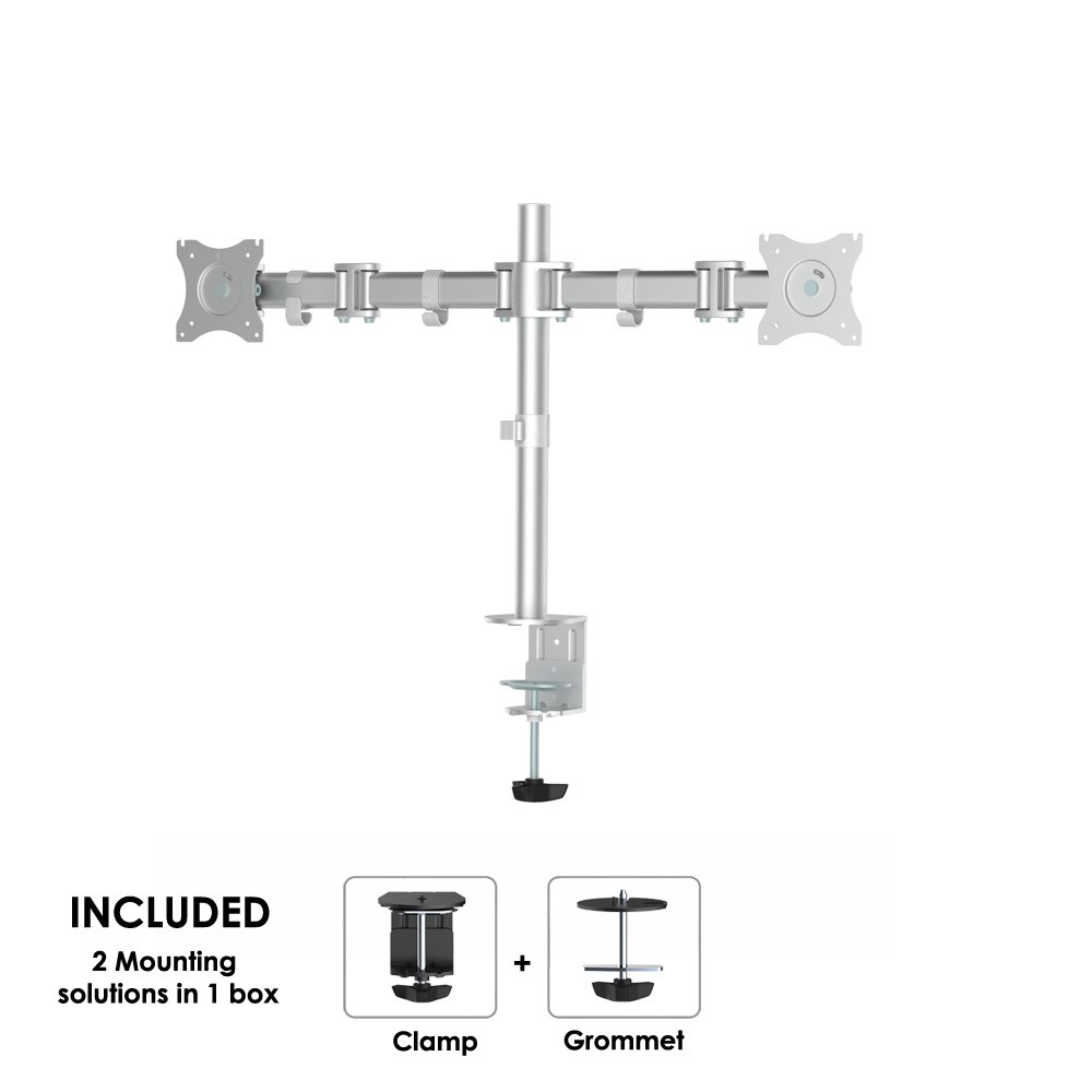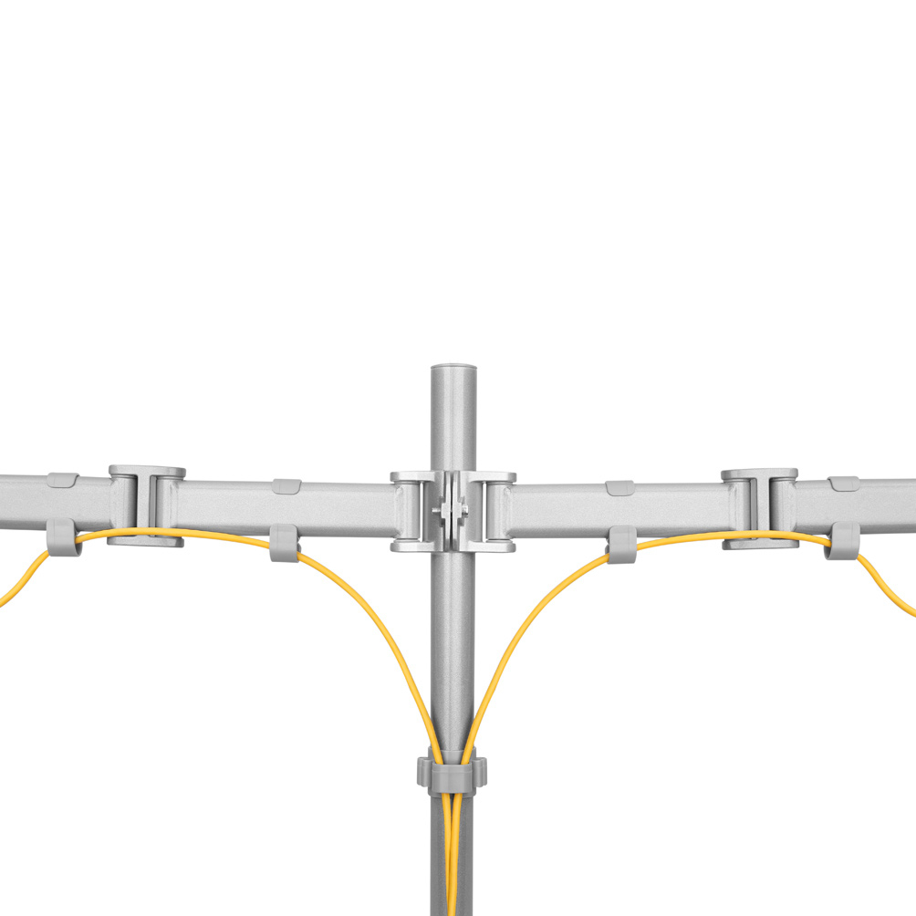 Met deze Newstar NM-D135DSILVER Flatscreen bureausteun bevestigt u twee flatscreens aan het bureau via een bureauklem. Door gebruik te maken van een monitorarm profiteert u optimaal van de mogelijkheden van uw monitor. De monitorarm is eenvoudig in hoogte en diepte te verstellen. Tevens kunt u het scherm kantelen, zwenken en roteren. Hierdoor creëert u de ideale ergonomische werkhouding. Dit verkleint de kans op nek- en rugklachten. Kabels zijn netjes weg te werken aan de onderzijde van de horizontale arm. De NM-D135 DSILVER heeft 3 draaipunten en is geschikt voor schermen t/m 27″ (69 cm). Het draagvermogen van de arm is 8 kg per scherm. Dit product is geschikt voor schermen met een VESA gatenpatroon van 75 x 75 mm of 100 x 100 mm. Heeft u een afwijkend (groter) gatenpatroon, dan kunt u dit oplossen met een van onze VESA verloopplaten.