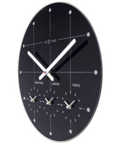 NeXtime’s Big City wereldklok heeft 3 extra tijdzones. Ideaal voor thuiswerken, kantoren of bij een stijlvol interieur want deze klok houdt je in 1 oogopslag op de hoogte van de lokale tijd bij je collega’s, familie, vrienden of geliefde. Deze zwarte klok met witte zeefdruk index is voorzien van een stil uurwerk. Deze glasklok werkt op 4 x AA batterij (niet inbegrepen)
