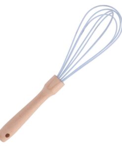 Een siliconen (blauw) garde met houten handvat van Patisse. Lengte: 30 cm.
