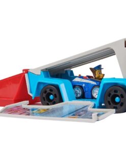 De compacte voertuigspeelset is 25,4 cm lang en 12,7 cm hoog en kan in een spannende transformatie worden omgebouwd van een Paw Patroller-speelgoedtruck tot een geweldig mobiel commandocentrum, compleet met lanceerschans voor voertuigen en speelgoedopbergruimte voor extra Pup Squad-raceauto’s (elk afzonderlijk verkocht). Wanneer het tijd is voor een snelle reddingsactie, haal je Chase uit de cabine en zet je Chase bovenop de cabine om de transformatie te starten. Het dak van de trailer gaat open en verandert in een lanceerschans, en de wanden gaan omlaag, zodat je een podium en extra opbergruimte voor je voertuigen krijgt. Geschikt voor kinderen vanaf 3 jaar.