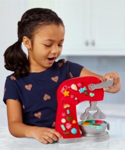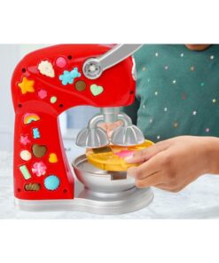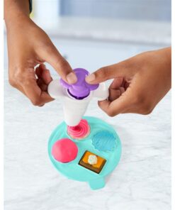 Aankomende banketbakkertjes kunnen zich helemaal uitleven door 1 van de 2 Play-Doh-trays met vormpjes in de verwijderbare kom te plaatsen, elk vormpje te vullen met Play-Doh-boetseerklei en eenvoudig aan de hendel te trekken om de grappige koekjes en gekke taartjes te maken! Voeg zwierige namaakglazuur toe met de spuit of spatel, maak strooisel met de gaatjes in het handvat van de spatel en maak nog meer zoetigheden, toppings en versieringen van Play-Doh met de halve vormpjes aan de zijkant van de speelgoedmixer. Bij deze Play-Doh-set hoort 283 gram niet-giftige boetseerklei in verschillende kleuren. Een leuke knutselactiviteit of cadeautje voor kinderen vanaf 3 jaar die houden van keukenspeelgoed en speelgoedvoedsel.