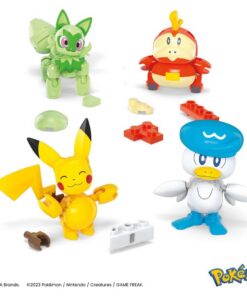 Deze set bevat 4 te bouwen beweegbare figuren, waaronder Pikachu en de 3 nieuwe eerste partners Pokmon Sprigatito, Fuecoco en Quaxly. Ook een Pok Bal met noppen is niet vergeten, zodat je meer presentatiemogelijkheden hebt. 79-delig. Geschikt voor kinderen vanaf 6 jaar.