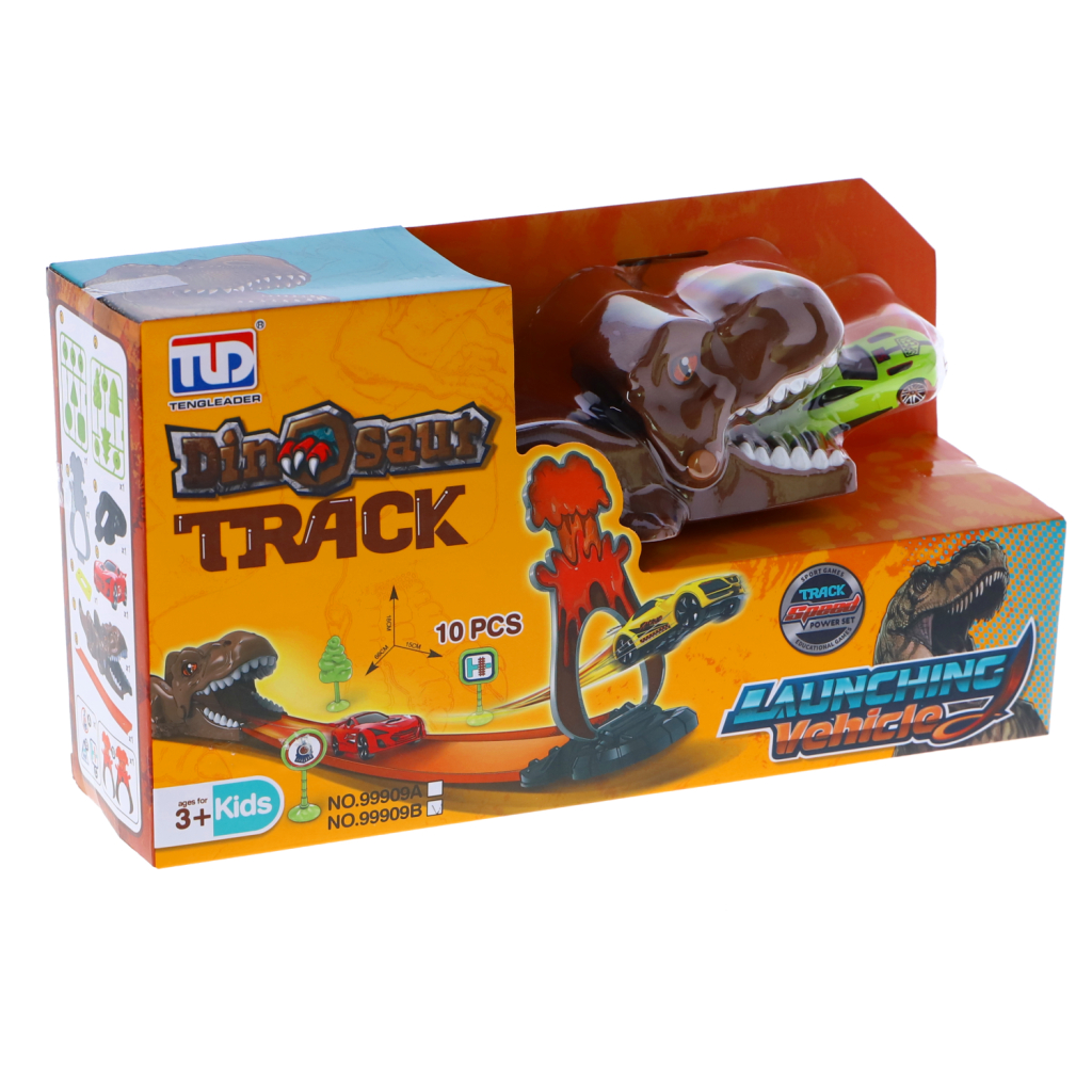 Racebaan van ca. 66 cm, inclusief raceauto. Ontsnap uit de bijtende kop van de haai óf dinosaurus, en spring door de vulkaan heen om te ontsnappen. Geschikt voor kinderen vanaf 3 jaar. Verkrijgbaar in verschillende uitvoeringen. U kunt niet kiezen, maar ontvangt een willekeurige uitvoering.