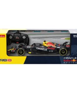 Red Bull Racing Team bestuurbare F1 auto van het merk Rastar. Schaal is 1:18. De gedetailleerde auto is rijklaar en eenvoudig te bedienen. Met het 2,4 GHz besturingssysteem kun je vooruit-links-rechts, achteruit-links-rechts en ben je erg flexibel in de bochten. Max. snelheid is 8.2 km/u en het bereik is max. 15 m. Dit is een replica van de F1 Ferrari auto 2022, bestuurd door Max Verstappen en Sergio Perez. Je hebt 5x AA batterijen nodig (niet inbegrepen). Deze race auto is een must voor alle liefhebbers en verzamelaars!