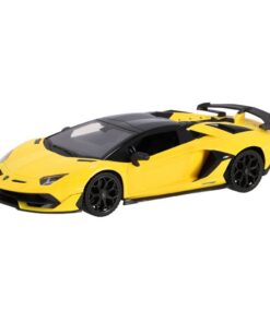 Radiografisch bestuurbare autoop schaal van 1:14. Model Lamborghini Aventador, in de kleur geel. Met werkende koplampen. Max snelheid: 12 km/u. Bereik: 30 meter. Geschikt voor kinderen vanaf 3 jaar.