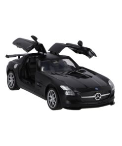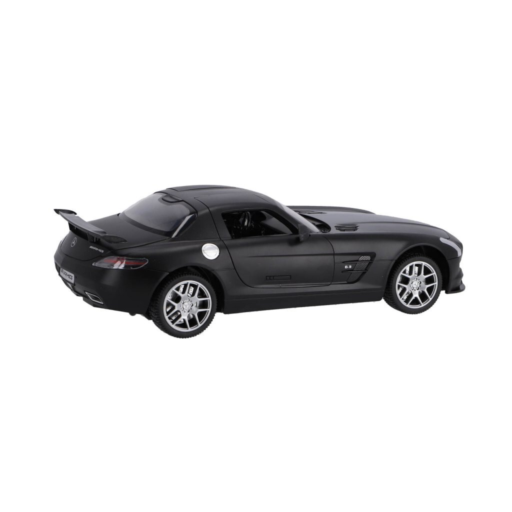 RC zwarte Mercedes-Benz SLS AMG GT Final Edition op schaal van 1:14. Max snelheid 12 km/u. 30 meter bereik. Deuren kunnen open. 2.4 GHZ. Geschikt voor kinderen vanaf 3 jaar.