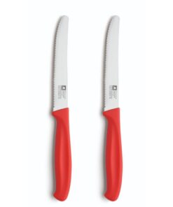 2-delige settomatenmessen van Richardson Sheffield. Het lemmet van dezehuishoudmessen is gemaakt van hoogwaardig roestvrij messenstaal, hierdoor blijft het lemmet langdurig scherp en geeft het mes veel snij comfort.De messen zijn ideaal voor het snijden van tomaten en gelijksoortigezachte groenten.Verkrijgbaar in moderne, heldere kleuren.