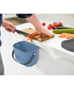 De emmer is de perfecte keukenhulp om organisch afval, maar ook bijvoorbeeld koffiecapsules of afwastabletten, handig en eenvoudig op te vangen.Dankzij het ideale, compacte formaat kan hij zowel op het werkblad worden geplaatst als met het geïntegreerde ophangsysteem aan deuren en lades in de keuken worden gehangen.Dankzij de grote opening staat niets een eenvoudige en schone afvoer in de weg.Bovendien valt de deksel niet altijd dicht, maar blijft hij zonder problemen in geopende stand staan ??of kan indien nodig volledig worden verwijderd.Zodra de emmer vol is, maken de comfortabele handvatten hem gemakkelijk en eenvoudig te dragen.Onze stijlvolle en stijlvolle emmer is verkrijgbaar in 6 verschillende kleuren, zodat er voor ieders smaak iets te vinden is.Overtuig uzelf ervan dat een GFT-bak niet alleen een keukenhulpje kan zijn, maar ook een blikvanger in uw keuken. Inhoud: 3,2 liter. Kleur: blauw.
