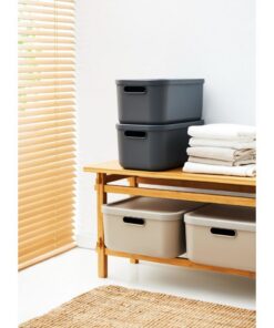 De nieuwe maten 12 liter en 20 liter passen perfect bij de reeds bestaande 25 liter en 40 liter boxen en vullen zo het perfect doordachte systeem aan. De boxen zien er niet alleen goed uit, ze kunnen ook prachtig op elkaar gestapeld worden, waardoor u gemakkelijk orde kunt houden in uw huis. Het dragen wordt gemakkelijk gemaakt door de open handgrepen. Het onderhoudsvriendelijke plastic maakt een zeer eenvoudige en snelle reiniging mogelijk, zowel aan de binnen- als aan de buitenkant. Alle producten worden vervaardigd uit 100% gerecycled plastic en zijn 100% recyclebaar.