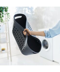 Onze Jona-lijn van moderne wasmanden bewijst dat dit mogelijk is! Geïnspireerd door de vorm van natuurlijke stenen die we in de natuur vinden, zijn deze manden meer dan alleen opslag; ze zijn een statement voor je huis. Verkrijgbaar in drie trendy kleuren, passen ze moeiteloos in elk interieur. Flexibiliteit en duurzaamheid zijn de kenmerken van ons product, waardoor het een betrouwbare metgezel is voor je dagelijkse wasbehoeften. De vier ergonomische handgrepen zorgen voor gemakkelijk dragen, wat extra comfort biedt bij je huishoudelijke taken. Inhoud: 39 liter. Kleur: antraciet.