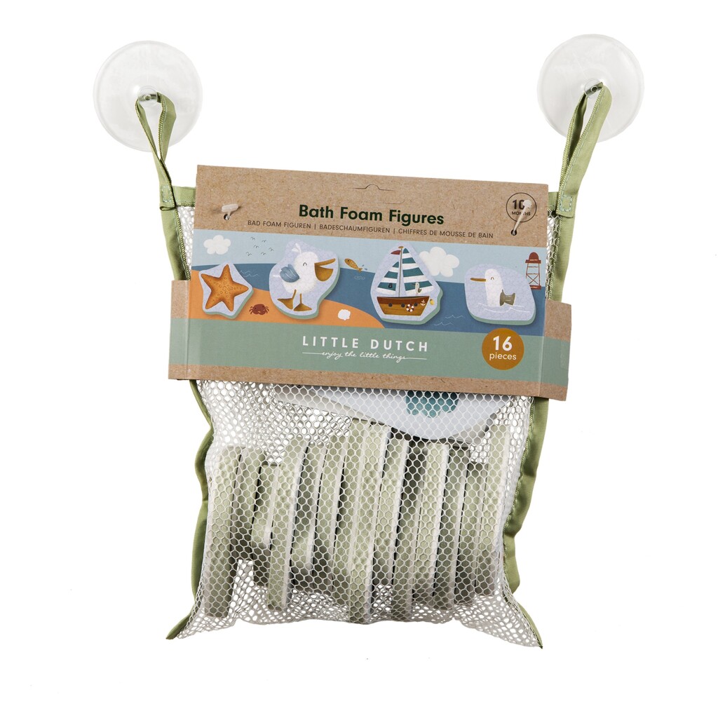 Lekker spelen in bad met deze vrolijke foam badfiguren van Little Dutch! In deze set zitten 16 figuren, uitgevoerd in de blauwe kleurstelling van het Sailors Bay thema. De badfiguren zijn gemaakt van foam. Maak ze nat en plak ze op de badrand of op de tegels! Handig verpakt in een opbergzakje met zuignappen.