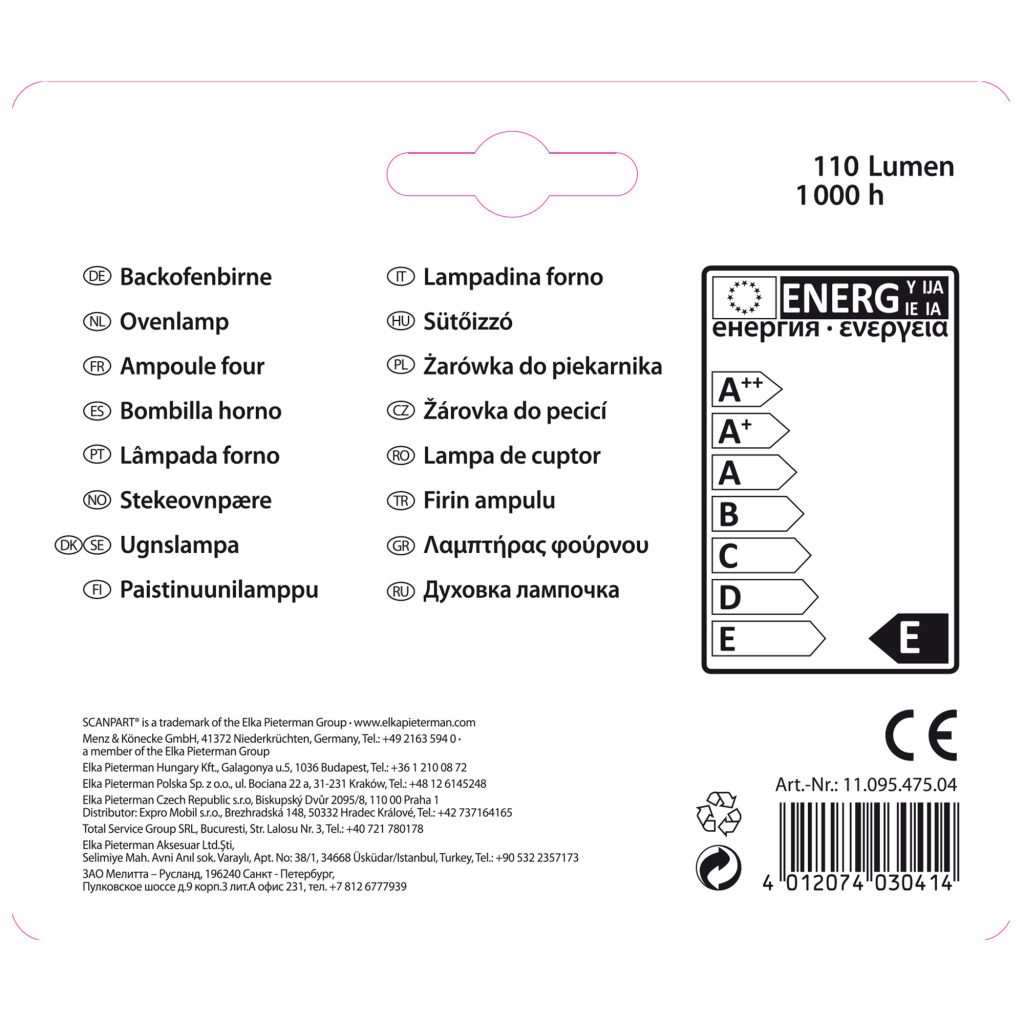 Ovenlamp E14 15w 300gr Buis A2