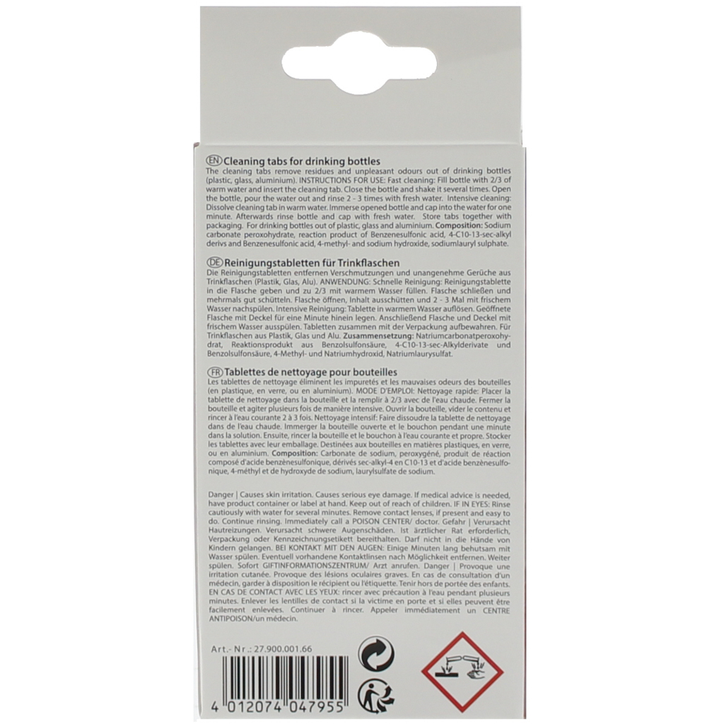 - De reinigingstabletten verwijderen resten en onaangename geuren uit drinkflessen (kunststof, glas, aluminium)