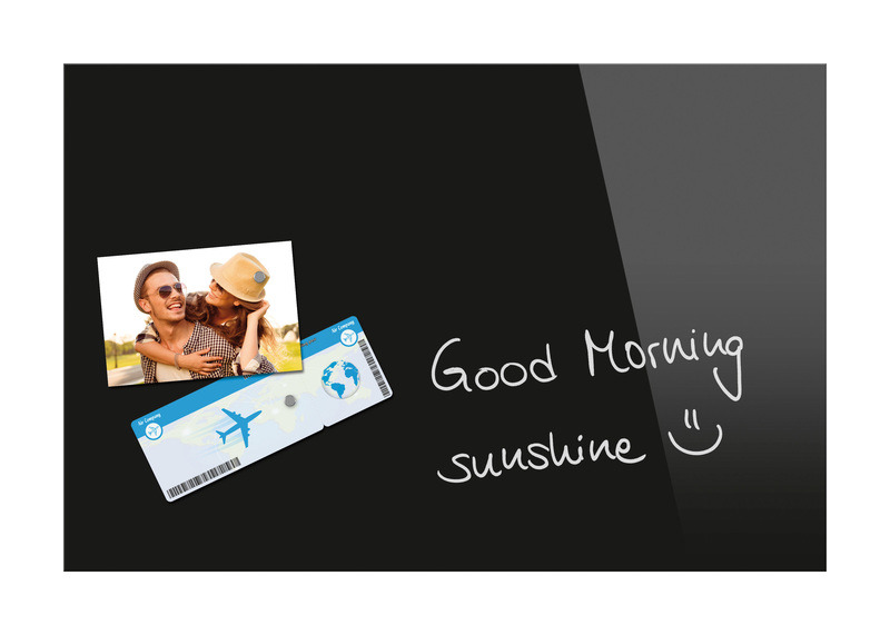 Magneetbord met 2 sterke magneten. Beschrijfbaar met alle soorten krijtmarkers en boardmarkers, Zowel droog als vochtig schoon te vegen. Voorzien van zekerheidsglas naar de norm EN 12150-1. Onzichtbare ophanging, eenvoudige montage. 7 jaar garantie. Formaat 600 x 400mm, kleur zwart.