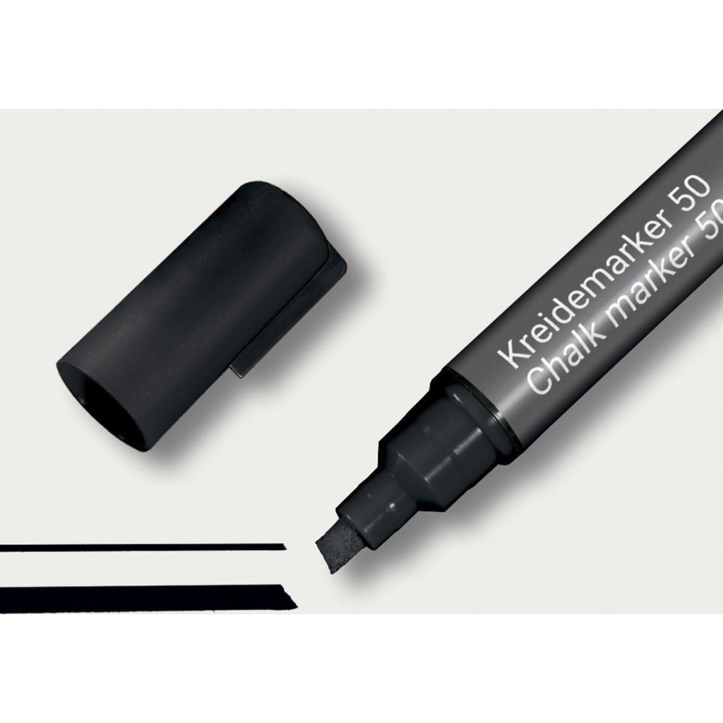 - De gemakkelijk uitwisbare krijtstift is perfect voor opvallend schrijven op glad glas, glas-magneetborden en bijna alle gesloten oppervlakken. Ook geschikt voor etalages of spiegels.