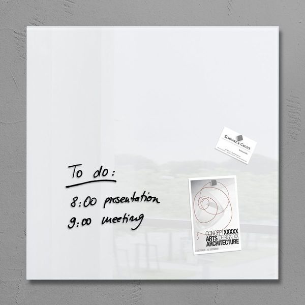 Glas-magneetborden artverum zijn ware kunstwerken en een lust voor het oog. De op vierkant of rechthoek gereduceerde vormen van de artverum serie werken alleen, maar ook als combinatie van verschillende formaten en vormen helemaal in de zin van “style your room”. Glas-magneetborden zijn borden die aan de wand worden bevestigd – op kantoor, in vergaderruimtes of thuis. Ze zijn te beschrijven, magnetisch en dienen, naast hun pure esthetische functie, ook voor verschillende gebruiksdoeleinden. Garantie; 25 jaar op het glasoppervlak-www.sigel.de/garantie (bij gebruik van de Sigel glas-magneetbord accessoires). Kleur wit. Formaat 480x480x15mm. Inclusief 3 magneten.