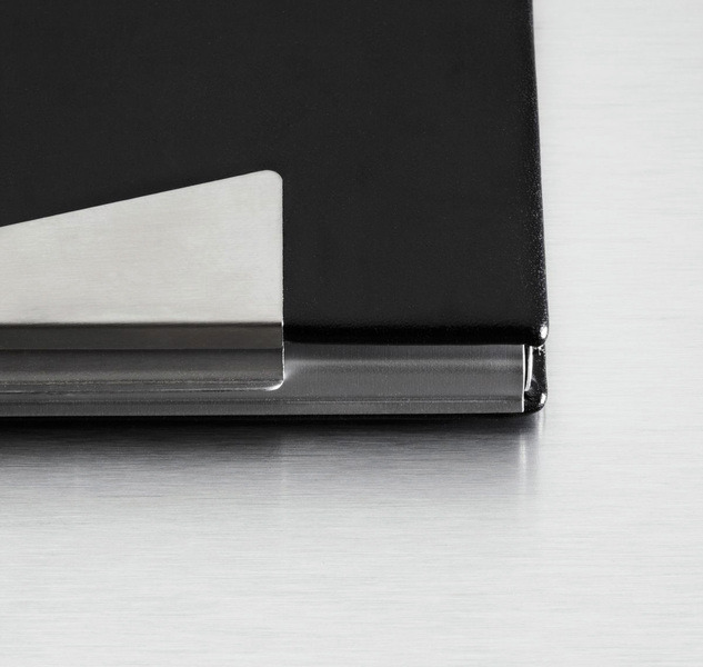 Etui voor visitekaartjes. Zilver. Zwart. Alu/leer optiek. Voor max. 20 kaartjes (max. 90×58 mm).