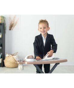 Met deze Smoby Tefal strijkplank met stoomstation zijn kleine helpers perfect uitgerust om flink mee te helpen in het huishouden! Kinderen kunnen hiermee strijken zoals de groten. De realistisch vormgegeven strijkplank heeft een stevig kunststof frame en een stoomstrijkstation om het strijkijzer op te zetten. Het strijkijzer is voorzien van een mechanische draaiknop met een “klik-klak”-geluid. Na het huishouden kan de strijkplank eenvoudig worden ingeklapt en snel worden opgeborgen. De gestreken kleding kan worden opgehangen aan de twee meegeleverde kleerhangers. Met de vier wasknijpers kunnen nog meer kledingstukken worden opgehangen. Net als in het echt is er ook een flesje met strijkspray (lege verpakking). Afmeting: 69 x 23 x 48,5 cm. Geschikt voor kinderen vanaf 3 jaar.