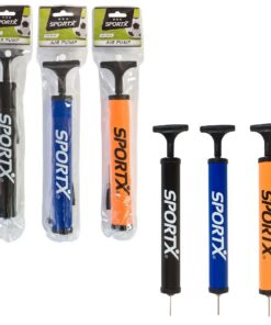 SportX balpomp met handig verloopstukje en metalen naald. Lengte van de pomp: 30 cm. Verkrijgbaar in verschillende kleuren. U kunt niet kiezen, maar ontvangt een willekeurige kleur.