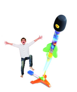 Met een flinke stamp op de launch pad, schiet de raket hoog de lucht in! Je kunt zelf instellen welke kant je ‘m op wilt lanceren, en in welke hoek. De raketten zijn vervaardigd uit zacht foam. Eén van de twee raketten maakt een gillend geluid, als je ‘m lanceert! Geschikt voor kinderen vanaf 5 jaar.