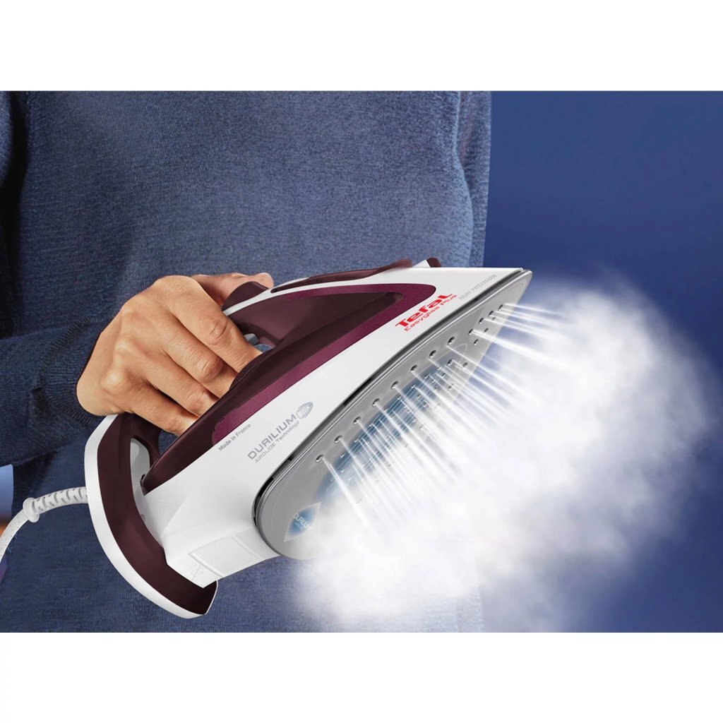Werk je strijkgoed makkelijker en efficiënter weg met het Tefal FV5714 Easygliss Plus stoomstrijkijzer. De Easygliss is uitgerust met de Tefal Durilium Airglide Technology strijkzool die, dankzij een vermogen van 2400 Watt, in een handomdraai opgewarmd is. Zo kun je direct aan de slag, en een continue stoomafgifte van 45 g/min. en een stoomstoot van 190 g/min. garanderen dat geen kreuk of vouw je te veel is. Zie je elke week tegen een berg strijkgoed op? Het Easygliss Plus strijkijzer gaat je daarbij helpen! De extra dunne Durilium Airglide Technology strijkzool glijdt moeiteloos over al je wasgoed heen; deze strijkzool biedt zelfs het beste glijvermogen in zijn klasse. 2400 Watt aan vermogen zorgt ervoor dat de zool snel opgewarmd is, en maakt een continue stoomafgifte van 45 g/min. mogelijk. Zo werk je die berg wasgoed snel weg. Een extra krachtige stoomstoot van 190 g/min. strijkt de meest hardnekkige vouwen en kreuken glad. Verder is bijvullen makkelijker dankzij het slimme design, de druppelstopfunctie houdt je wasgoed netjes en schoon, en de 100% actieve stoomgaten zorgen voor een perfecte stoomverdeling en -dekking.