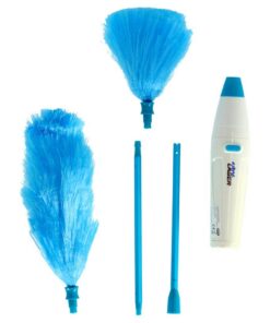 Deze superhandigeTurbo Duster elektronische stoffer stoft razendsnel af en is veel veiliger voor kleine, wat wankel staande snuisterijen dan een gewone stofdoek. Elektrostatisch geladen haren trekken overal stof uit en vangen stof op. De Turbo Duster heeft super zachte borstelharen, die zich aanpassen aan elke vorm van uw meubels en zachtjes stof weg-spinnen. Geen behoefte meer aan een veren stofdoek, doek of stof-reiniger. Boekenplanken, jaloezieën, meubels, gleuven, hoeken en andere moeilijk bereikbare plaatsen, ze zijn allemaal gemakkelijk af te stoffen. Met de verlengsteel kom je gemakkelijk bij hoger gelegen plekken als bovenop de boekenkast. De plumeaus zijn wasbaar en kunnen met de hand worden afgespoeld en vervolgens aan de lucht worden gedroogd.