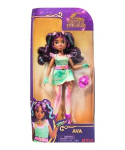 Verzin thuis betoverende avonturen op de Unicorn Academy met de modepop Ava. Deze poppen van 24 cm voor meisjes, die zijn geïnspireerd op de Netflix-animatieserie en de populaire boekenserie waarin alles draait om vriendschap, brengen de personages helemaal tot leven. Ava is van top tot teen prachtig afgewerkt. Haar sprankelende persoonlijkheid komt tot uiting in het haar met highlights (haarborstel inbegrepen) en haar kenmerkende eenhornruiter-outfit: roze en blauwgroene bloemblaadjesjurk, broek met kleurverloop en Plantmagie-markeringen, bloemenlaarzen, haarclips, handschoenen en vlinderriem. Met 9 scharnierpunten kun je Ava poseren terwijl je Eenhoorn Eiland en zijn magie beschermt, en op avontuur gaat met haar eenhoorn Leaf (afzonderlijk verkocht). De magische band tussen studenten van de Unicorn Academy en hun eenhoorns inspireert tot oneindig veel fantasierijke verhalen. Haal de magie van de Unicorn Academy in huis met de Ava-pop.