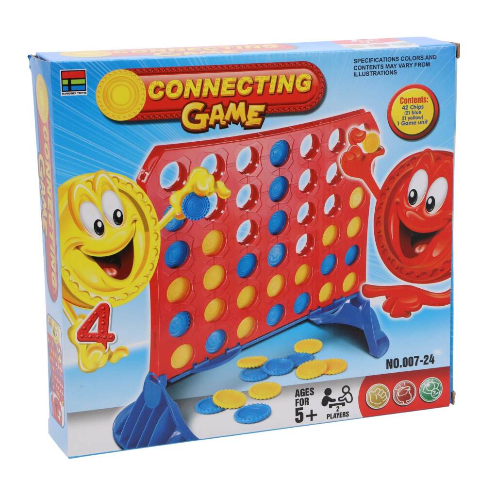 Probeer 4 fiches van dezelfde kleur in één lijn te krijgen, en eerder dan je tegenstander! Krijg jij het sneller voor elkaar dan je tegenstander, dan ben jij de winnaar. Geschikt voor 2 spelers vanaf 5 jaar. Spel bevat een speelbord en 42 fiches – 21 blauw, 21 geel.