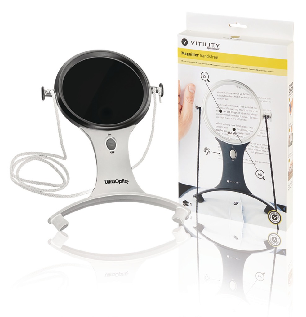 Het vergrootglas hangt aan een nekkoord, waardoor het niet vastgehouden hoeft te worden. Het is ideaal voor het lezen of bij handenarbeid. Het vergrootglas is voorzien van een lichtje, zodat het zicht wordt verbeterd.