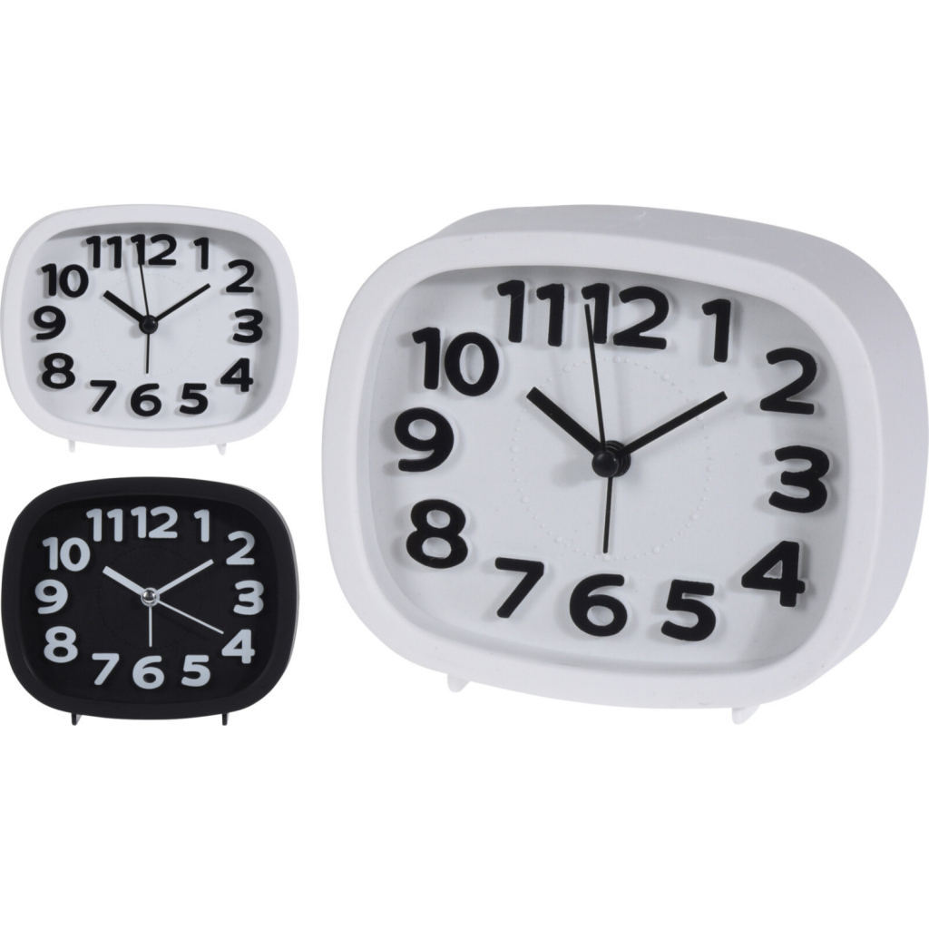 Deze klassieke wekker past door zijn kleur en formaat op elk nachtkastje! Afmeting: 12 cm. Werkt op 1 AA-batterij, niet inbegrepen.