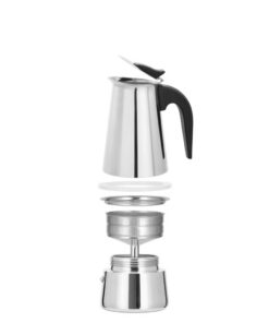 - Koffie bereiden op de klassieke Italiaanse manier: met de compacte espressokan van roestvrij staal maakt u heel eenvoudig goede koffie op elk fornuis inclusief inductie van zwarte koffie, espresso tot en met mokka latte, voor gasten, koffiedrinken thuis of onderweg