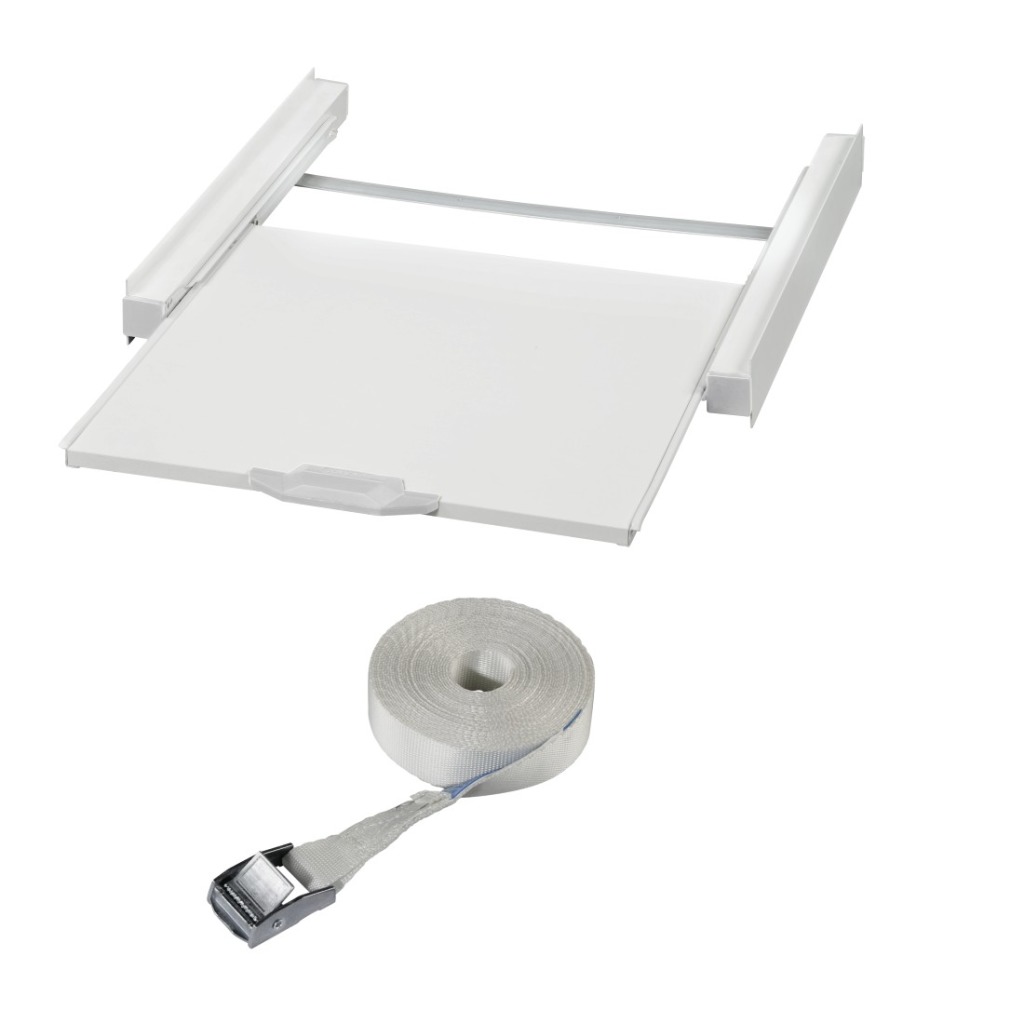 Je hebt je wasmachine en droger op elkaar geplaatst, maar nu heb je geen plaats meer om te werken? Dit uitvouwbaar werkblad geeft je weer de ruimte om de wasmand te plaatsen, was te vouwen of te ordenen. Het steunbad is universeel compatibel en kan vastgeschroefd worden.