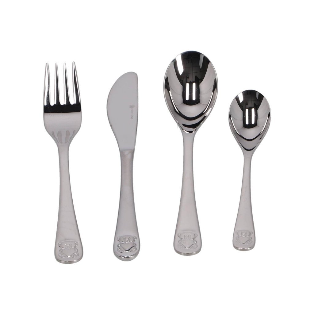 De bestekonderdelen zijn voorzien van een beer met hart in reliëf. Het besteksetje is gemaakt van RVS 18/10. Poetsen is niet nodig en het besteksetje mag in de vaatwasmachine. Bestaat uit een vork, lepel, mes en dessertlepel en wordt geleverd in een bijpassende geschenkverpakking.