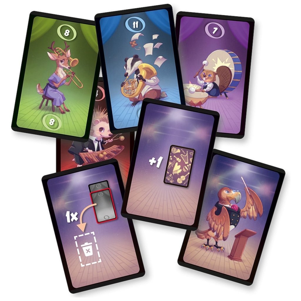 Als beroemdedirigentben je voortdurend op zoek naar talent. Je hebt echter sterkevoorkeurenwat betreft de omvang van jouw orkest. Je wilt uitsluitendsolistenofkwartettendirigeren. In dit spel probeer je daarom dejuistemuzikanten bij elkaar te zoeken.Kun jij het meest uitgebreide concert organiseren? Elke beurt neem je een muzikantenkaart van de gedekte stapel, die je naast ƩƩn van de dirigentkaarten legt, of je neemt een dirigentkaart inclusief de daarbij gelegde muzikantenkaarten en legt deze voor je neer. In het laatste geval is de ronde voor jou voorbij. Je probeert zo bepaalde muzikanten te verzamelen. Uitsluitend solisten en setjes van 4 muzikanten met hetzelfde nummer leveren punten op. Wie aan het einde van het spel de meeste punten heeft, wint het spel. Audition is een tactisch kaartspelvan eigen makelij. De spelregels zijnzeer eenvoudig,maar detactische mogelijkhedenzijn enorm. Verder bevat het spelvariantenmet onder andereactiekaarten om het nog uitdagender te maken.