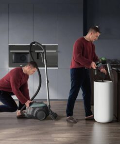 - Het gebruiksvriendelijke ontwerp en gecontroleerd leegmaakproces in 2 stappen garandeert een hygiënische en nette verwijdering van het stof uit de container.