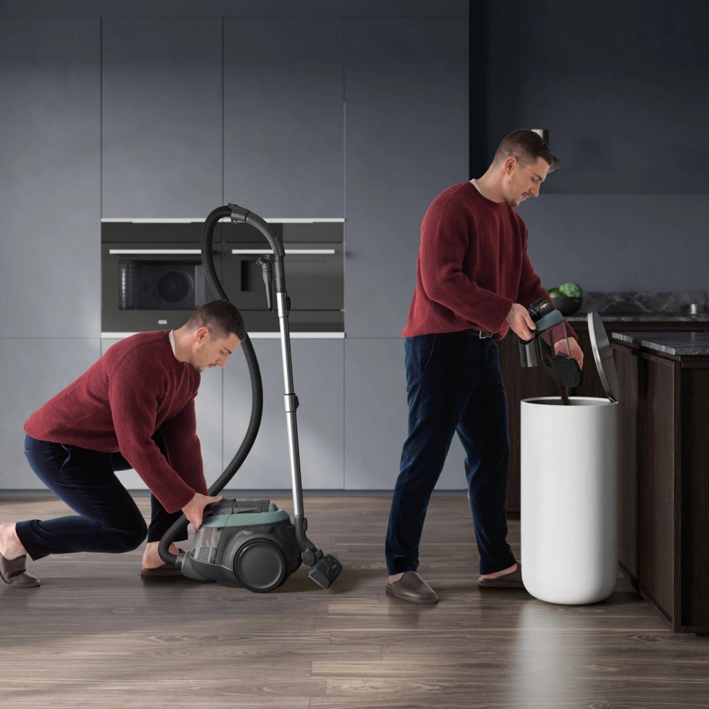 - De ergonomisch vormgegeven AEG CLEAN 6000 stofzuiger zonder zak, met geavanceerde cycloontechnologie, combineert topprestaties met uiterst precies leegmaken van de stofcontainer. Nette verwijdering van het stof voor een schonere woning.