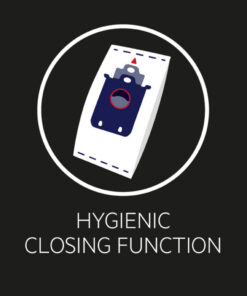 - De hygiënische sluiting sluit automatisch en zorgt ervoor dat er geen resten uitvallen wanneer de zak verwijderd wordt