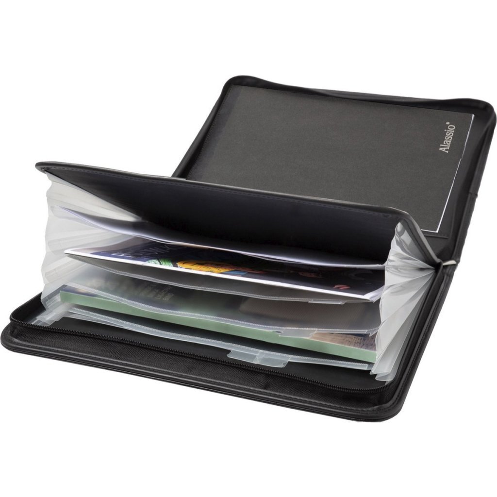 - Organiserende map is voorzien van 6 A4 vakken, ritsvak, 2 ordnerlussen, flexibel insteekvak met visitekaartvak, flexibele multifunctionele riemen, 3 visitekaartvakken, SD-kaartvak en afneembaar ringbandmechanisme