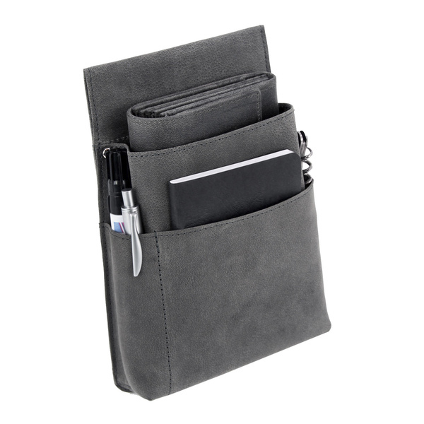 Kelnerportefeuille met zes opbergvakken voor biljetten, portemonnee, compartiment met ritssluiting, compartiment aan de achterzijde met instelbare sluiting met 3 posities. Buitenmaat ca. 18,5 x 9,5 cm.