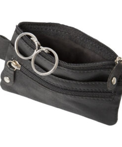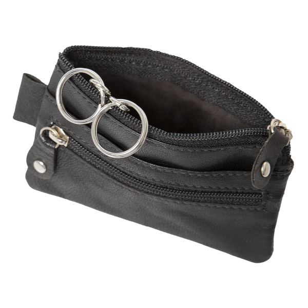 Hoofdvak met rits en twee sleutelringen, extra vak met rits, vak voor en achter