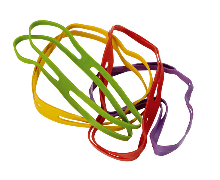 Kruisbandelastiek, handig voor het verpakken van stapels papier, brieven, boeken en pakketten. Assorti kleuren. 150x11mm.