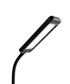 Elegant en compacte LED bureaulamp in een simpele moderne look. De lamp en de voet hebben dezelfde vorm. Het bovenste deel van de lichtarm is flexibel, en in alle richtingen verstelbaar. De lamp is in 3 stappen dimbaar en ook in 3 verschillende lichtkleuren configureerbaar. (warme en koude verlichting). 230V/ 16+8LEDs / 6W. Lichtstroom: 360 lumen. Lichtsterkte: op 30cm 1200 lux. Levensduur van de LED’s ca. 30.000 uur. Kleurtemperaturen: 3000-4000-6000k Kleur lamp: Zwart.