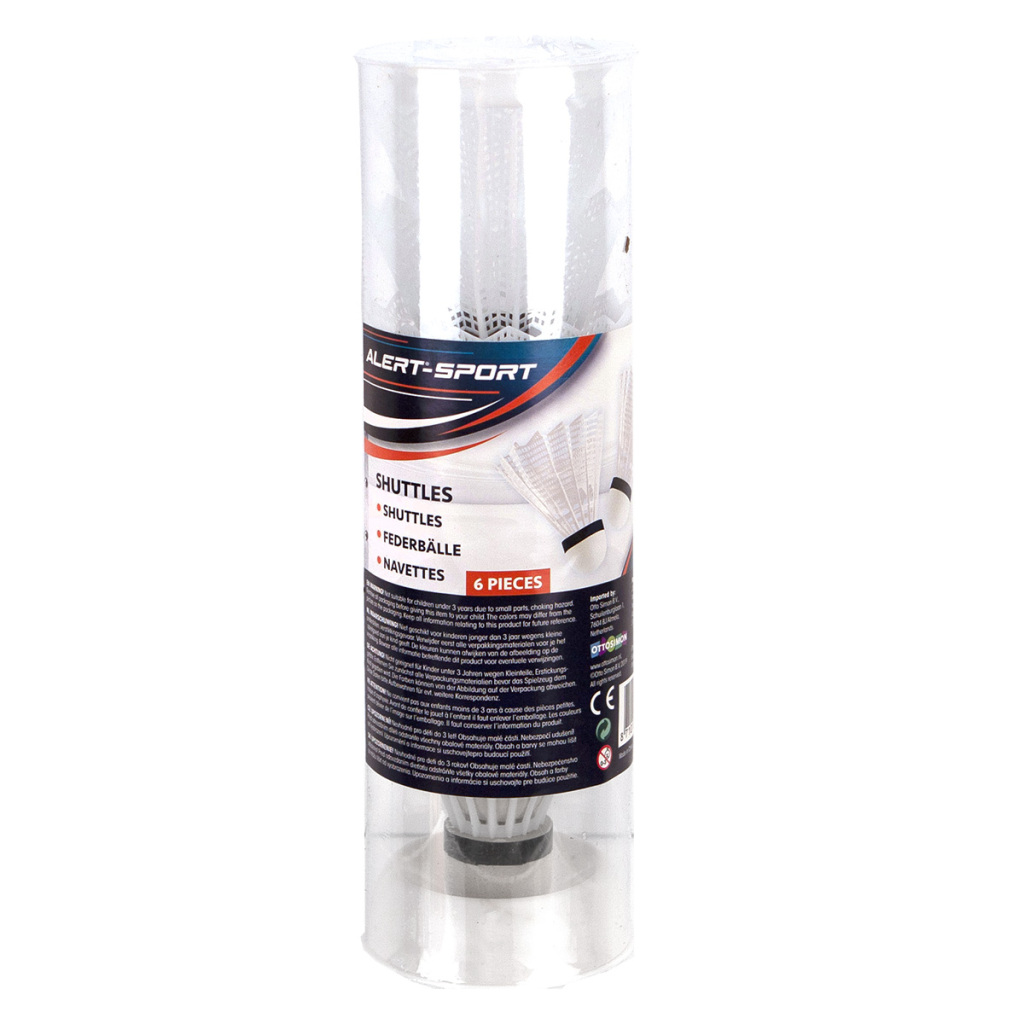 Ook zon zin in een potje badminton? Met dit setje met 6 witte shuttles van Alert heb jij altijd genoeg shuttles bij de hand! Geschikt voor kinderen vanaf 3 jaar.