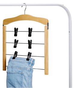 Deze ruimtebesparende Alpina broekhanger met knijpers is een handige hanger om kledingstukken zoals broeken en rokken aan te hangen. Hij beschikt over 4 lagen en 8 wasknijpers. Met een 360° flexibele ophanghaak zodat de hanger makkelijk in je kast past.