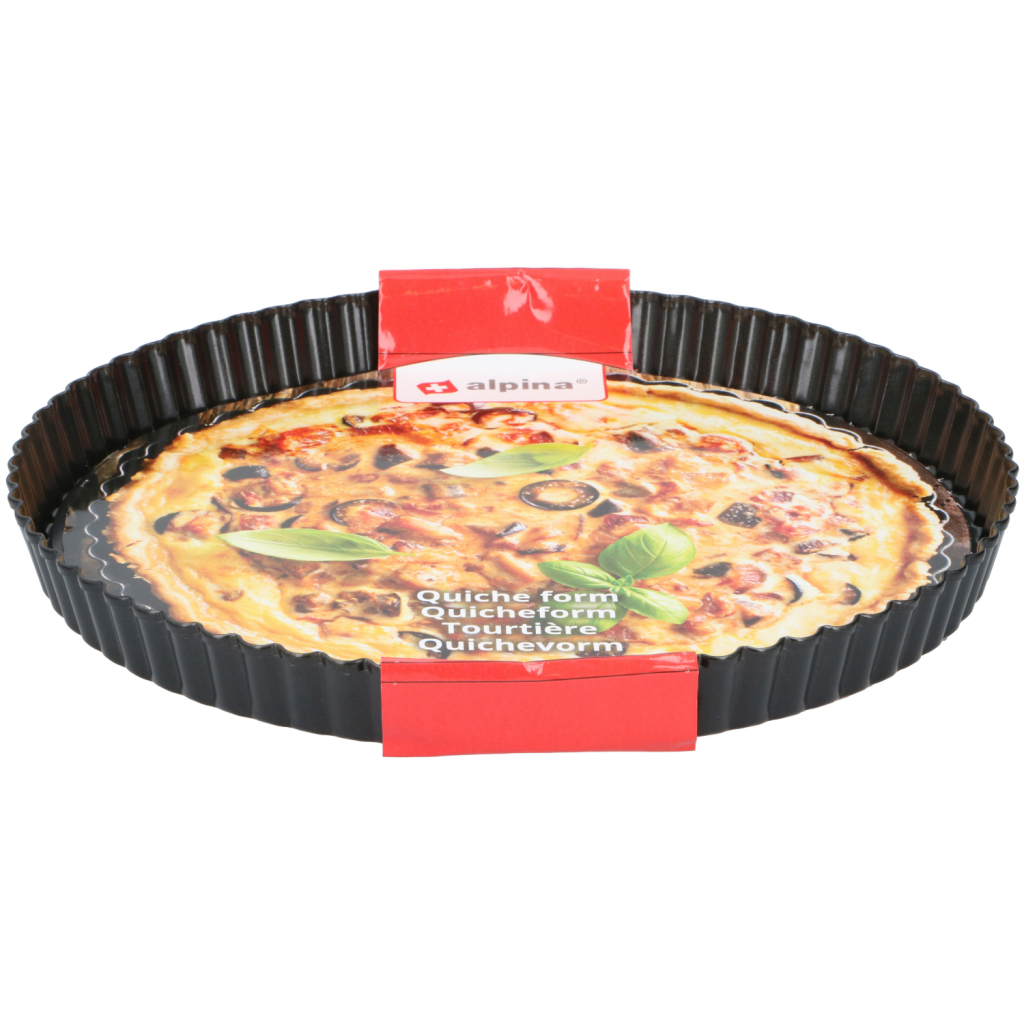 Stevige quiche bakvorm van Alpina. Diameter 28 cm en hoogte 3,5 cm. Kleur zwart.