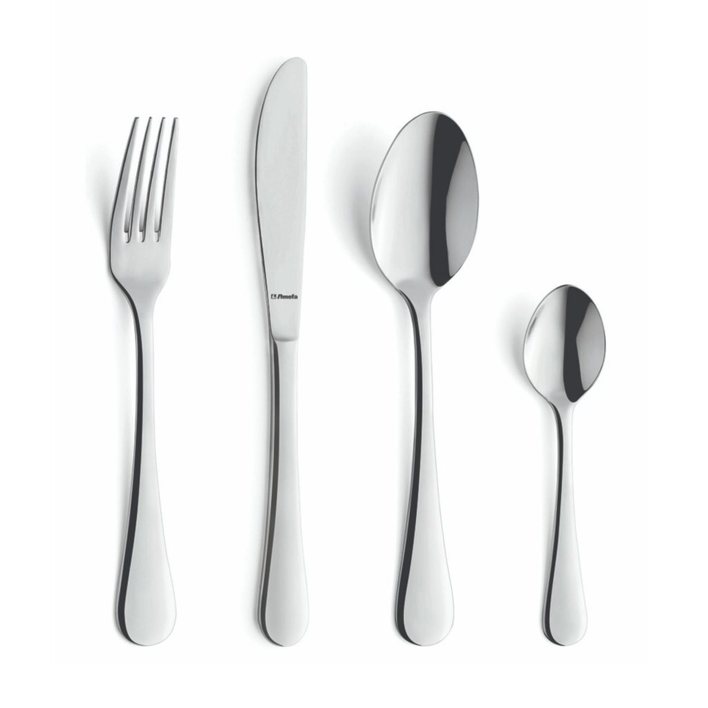 De 24-delige rvs besteksetAmefa Elara met een verfijnde hoogwaardige afwerking. De set bestaat in totaal uit 6 messen, 6 vorken, 6 lepels en 6 theelepes. Geschikt voor in de vaatwasser.